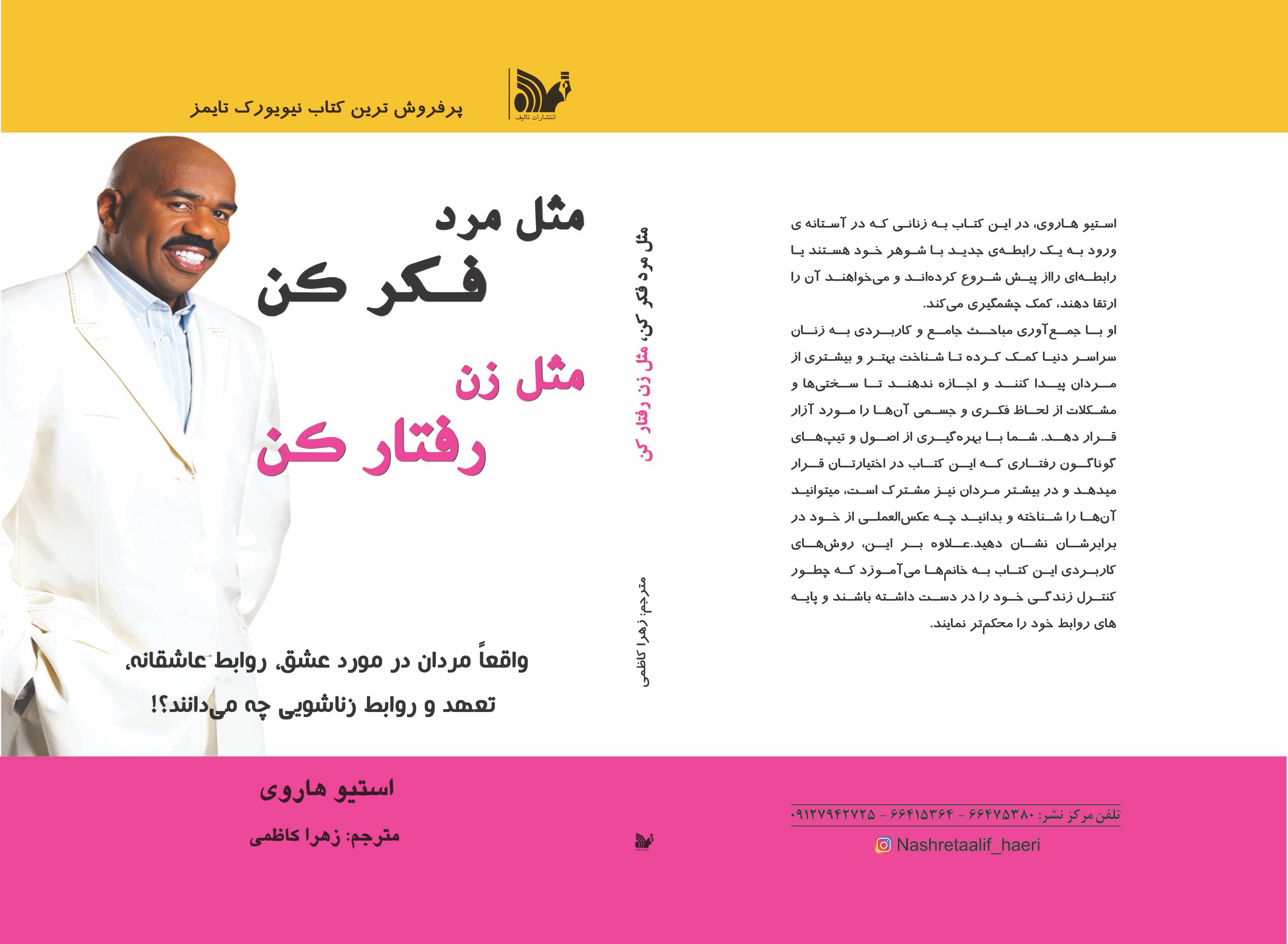در کتاب مثل یک مرد فکر کن مثل یک زن رفتار کن شخصیت رسانه ای و کمیک استندآپ کمدین معروف استیو هاروی جدی می شود ، او دانش و بینش و توصیه های بیهوده خود را برای هر زن خوبی که می خواهد یک مرد خوب پیدا کند یا عشق فعلی اش را ماندگار کند ارائه می دهد. البته کتاب اصلا خشک و جدی نیست و هاروی از شوخ طبعی مخصوص به خود برای جذاب کردن آن بهره برده است.